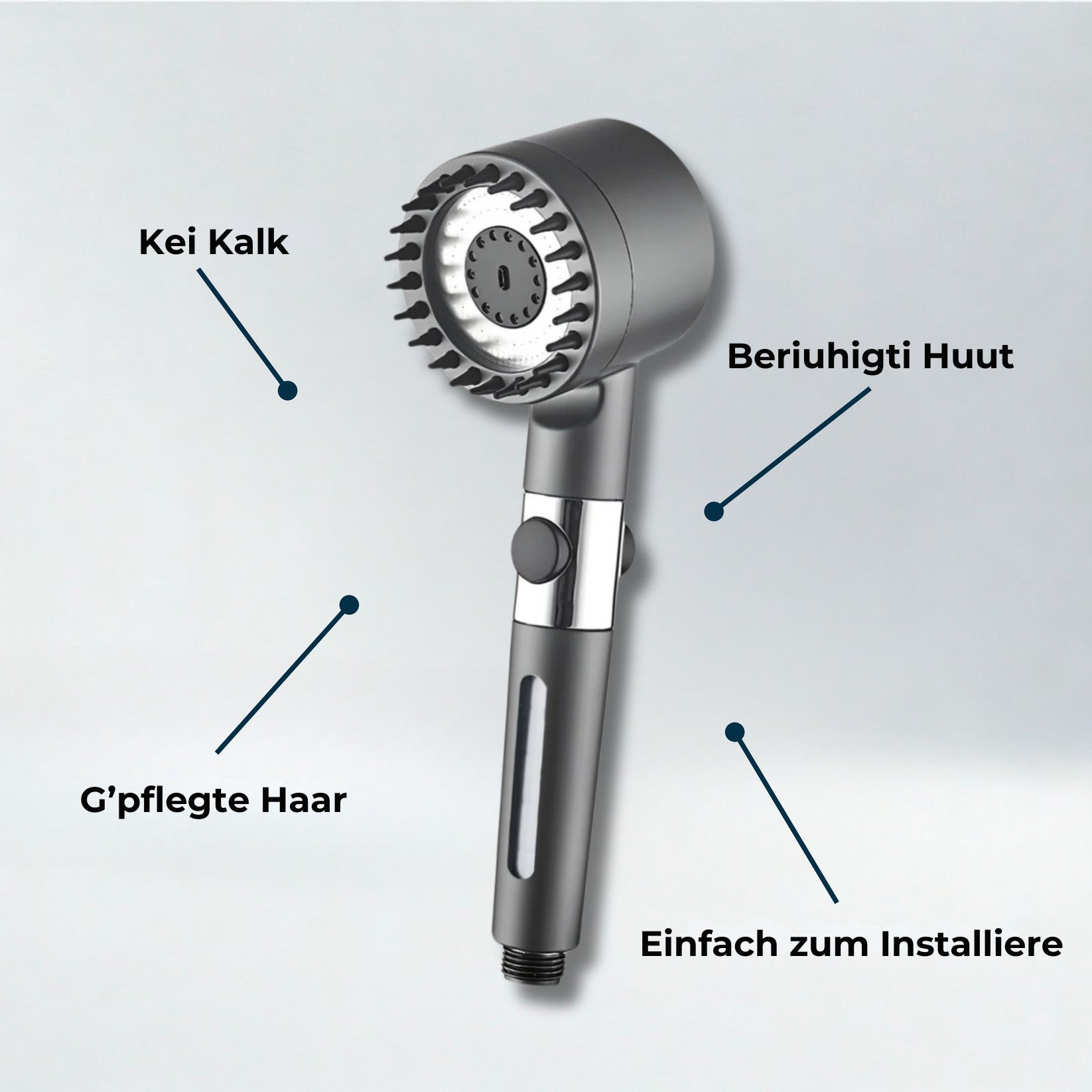 La douchette filtrante élimine le calcaire, le chlore, les métaux lourds et d’autres impuretés de votre eau de douche – pour améliorer votre peau, vos cheveux et votre bien-être.